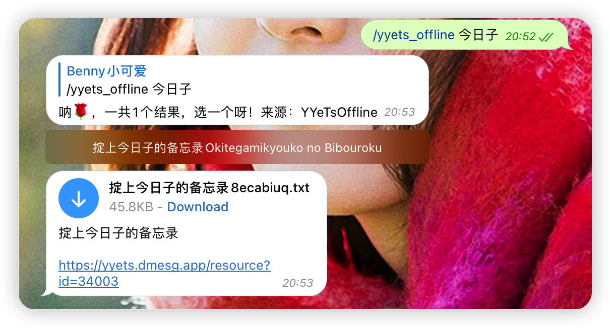 直接发送想要看的剧集名称就可以了,可选分享网页或者链接(ed2k和磁力链接)。